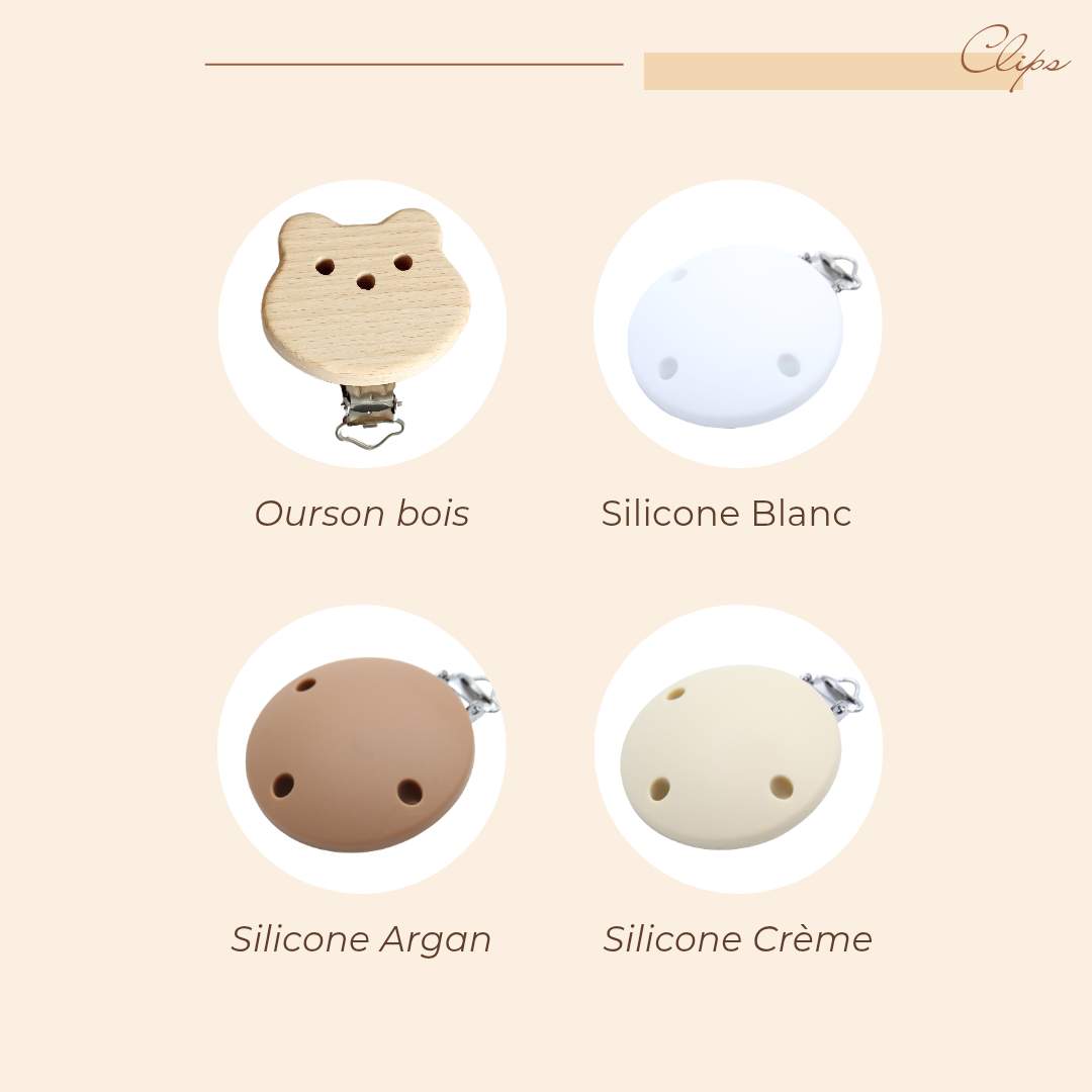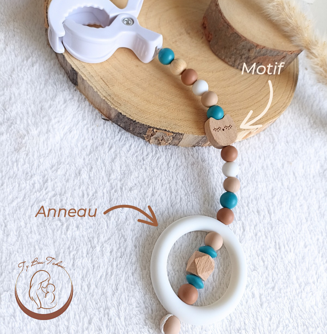 – Une attache-tétine, pour garder la tétine toujours à portée de main, tout en ajoutant une touche de mignonnerie à la tenue de bébé !
